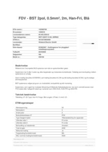 Tilkobling: IP: 20 Type: Han-Fri Farge: Blå Lengde: 2 Poler: 2 mm2: 0,5