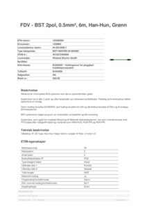 Tilkobling: IP: 20 Type: Han-Hun Farge: Grønn Lengde: 6 Poler: 2 mm2: 0,5