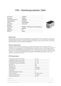 Distribusjonsblokker er designet for å fordele kabling fra en stor kabel inn til flere små ut. Kabel inn er fra 35mm2 til 120mm2 Al/Cu, kabler ut er fra 2,5mm2 til 35mm2 Cu. Antall klemmer ut er 11 stk, kabelen inn er tilpasset hva distribusjonsblokken er testet for. Distribusjonsblokk tåler opp til 250A, og spenning opp til 1000V. Kan monteres på DIN skinne eller med skrue direkte på montasjeplate.