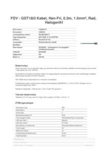 Prefabrikerte kabler i denne serien leveres med kabeltype N2GMH2G 3 x 1,0mm² (PVC). Kabelen har en temperaturtålighet på 180ºC.
