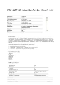 GST18i3 Kabel, Han-Fri, 5m, 1.5mm², Hvit