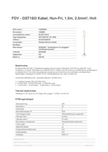 Produktfamilie GST18i3 – Prefabrikert pluggbar kabel av typene HAN-HUN, HUN-FRI og HAN-FRI. 3-pol innebærer L, N og PE. Alle ledere har tverrsnitt 2,5mm². Kabler med FRI ende er avmantlet 35mm og ledningene er avisolert 9mm. Frie ender er audiosonisk sveiset og det er ikke behov for endehylser ved tilslutning til fjærkontakter. Kabeltypen er H05VV (PVC). Kabelisolasjonen kan være hvit eller sort.