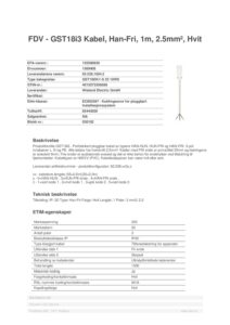 Produktfamilie GST18i3 – Prefabrikert pluggbar kabel av typene HAN-HUN, HUN-FRI og HAN-FRI. 3-pol innebærer L, N og PE. Alle ledere har tverrsnitt 2,5mm². Kabler med FRI ende er avmantlet 35mm og ledningene er avisolert 9mm. Frie ender er audiosonisk sveiset og det er ikke behov for endehylser ved tilslutning til fjærkontakter. Kabeltypen er H05VV (PVC). Kabelisolasjonen kan være hvit eller sort.