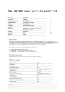 Produktfamilie GST18i3 – Prefabrikert pluggbar kabel av typene HAN-HUN, HUN-FRI og HAN-FRI. 3-pol innebærer L, N og PE. Alle ledere har tverrsnitt 2,5mm². Kabler med FRI ende er avmantlet 35mm og ledningene er avisolert 9mm. Frie ender er audiosonisk sveiset og det er ikke behov for endehylser ved tilslutning til fjærkontakter. Kabeltypen er H05VV (PVC). Kabelisolasjonen kan være hvit eller sort.