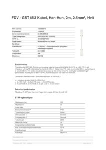 Produktfamilie GST18i3 – Prefabrikert pluggbar kabel av typene HAN-HUN, HUN-FRI og HAN-FRI. 3-pol innebærer L, N og PE. Alle ledere har tverrsnitt 2,5mm². Kabler med FRI ende er avmantlet 35mm og ledningene er avisolert 9mm. Frie ender er audiosonisk sveiset og det er ikke behov for endehylser ved tilslutning til fjærkontakter. Kabeltypen er H05VV (PVC). Kabelisolasjonen kan være hvit eller sort.