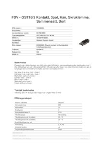 GST18i3 Kontakt, 3pol, Han, Skruklemme, Sort
