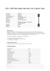 Produktfamilie GST18i5 – Prefabrikert pluggbar kabel av typene HAN-HUN, HUN-FRI og HAN-FRI. 5-pol innebærer L3, N, PE, L2 og L1. Alle ledere har tverrsnitt 2,5mm². Kabler med FRI ende er avmantlet 35mm og ledningene er avisolert 9mm. Frie ender er audiosonisk sveiset og det er ikke behov for endehylser ved tilslutning til fjærkontakter. Kabeltypen er H05VV (PVC). Kabelisolasjonen kan være hvit eller sort.