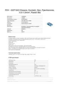 Fjær: 2 kontakter per pol, fleksibel kabel 0,5-1,5mm² med endehylse, stiv kabel 0,5-2,5mm².