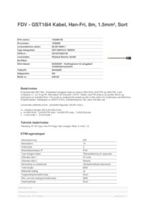 GST18i4 Kabel, Han-Fri, 8m, 1.5mm², Sort