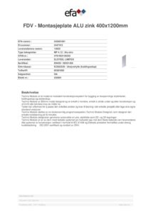 Montasjeplate ALU zink 400x1200mm