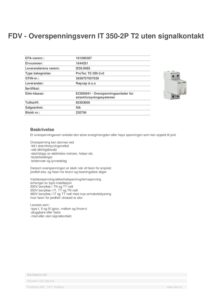 Produktnummer: 161000387El-nummer: 1644251Leverandørens varenr.: IZ59.0085Typebetegnelse: ProTec T2-350-2+0