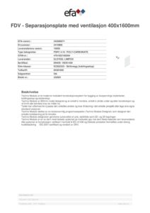 Separasjonsplate med ventilasjon 400x1600mm